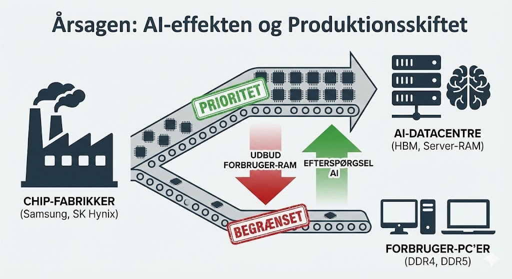 Her kom chokket. Producenter som Samsung og SK Hynix hævede kontraktpriserne markant. Forhandlere begyndte at melde om leveringsproblemer, og populære kits forsvandt fra hylderne.